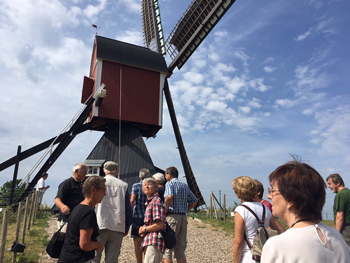 Bei bestem Wetter fand auch der Ausflug zur Thornschen Mühle, direkt hinter der deutsch-niederländischen Grenze statt. In einem mit vielen interessanten Bildern und Karten angereicherten Vortrag erhielt man im Informationszentrum einen umfassenden Einblick in die wechselvolle Geschichte dieser ehemaligen Poldermühle. Extra für den VBE löste der Müller die Bremse und die Flügel der Mühle drehten sich im Wind des Ooijpolders. Der anschließende Frühschoppen rundete einen gelungenen Vormittag ab.